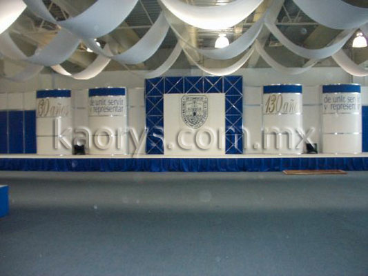 Estrados, pantallas, equipo de audio y video